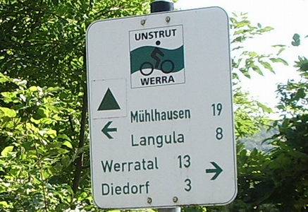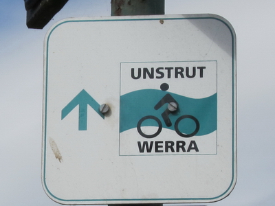 Den Wegweisern des Unstrut-Werra-Radweg Richtung Mühlhausen folgen. Der Weg ist zunächst asphaltiert, dann wird`s ein Feldweg.