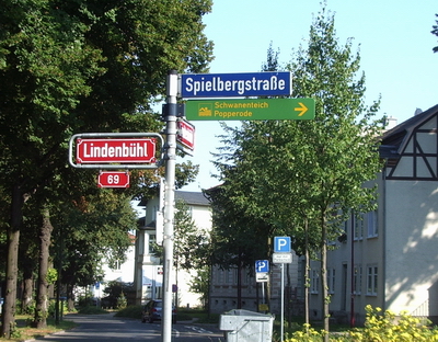 Die Beschilderung führt uns zum Schwanenteich. In der Stadt führen grüne Wegweiser in der Gegenrichtung zur Popperöder Quelle und zum Schwanenteich.