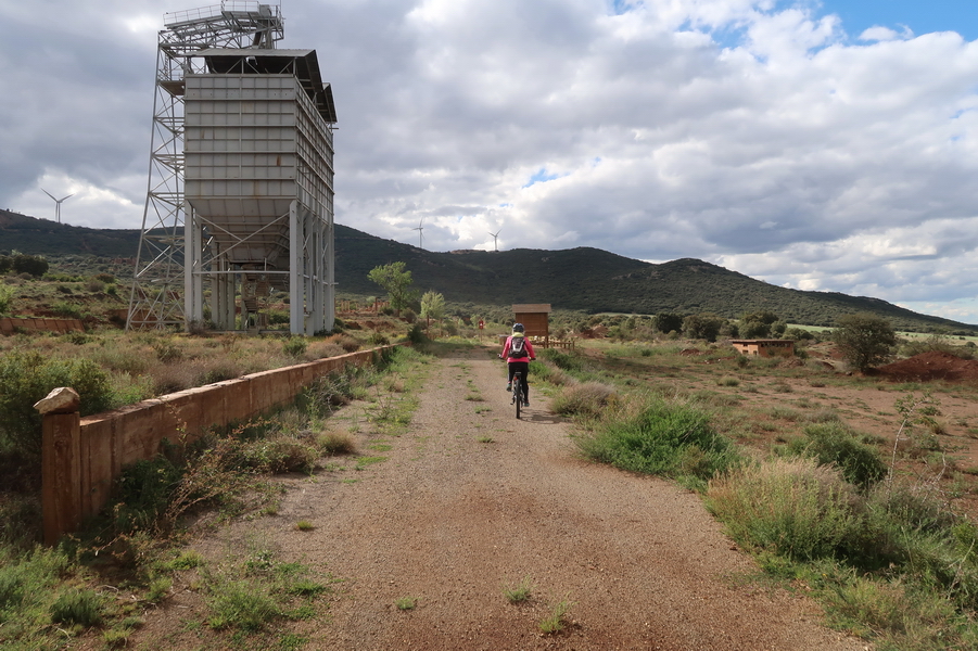Die Wegweiser sind der Zeit voraus: Einige Abschnitte der legendären Bahnstrecke warten immer noch auf ihre Verwandlung, z:B. Minas de Ojos Negro nach Santa Eulalia Bhf. ist noch nicht fertig (Mai 2024)....