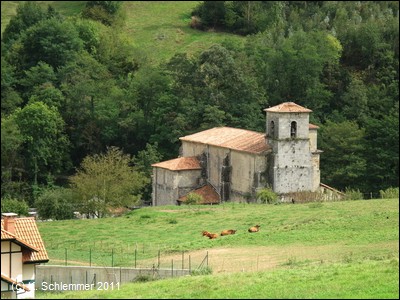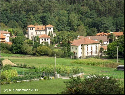 Wir unterqueren eine kleine Straße, die in den Ort Otañes führt. Malerisch liegt das Dorf im Tal des Río Mioño.