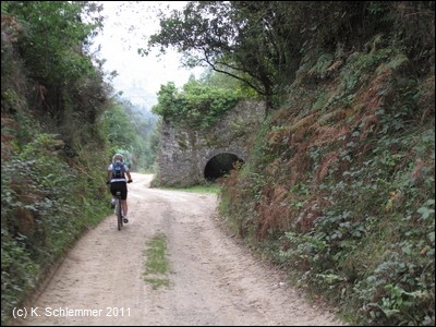 Wir folgen nun dem Río Callejamala (was übersetzt etwa schlechte Gasse bedeuten könnte), aber der Weg wird hier eher besser. Ein kurzer Tunnel liegt vor uns (Vorsicht, evtl. Kfz Verkehr!)