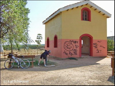 Am ehemaligen Haltepunkt (Apeadero) Rio Livillos ist ein Rastplatz eingerichtet, es gibt Trinkwasser. (Die Vandalen waren wohl auch schon hier, das übliche Geschmiere an den Wänden).