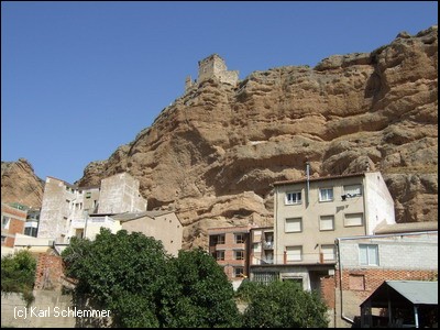 Steile Felswände begleiten uns bis nach Quel, über der Stadt thront eine alte Burg