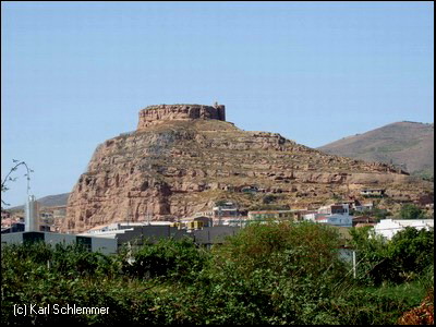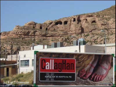 Eine holprige Piste erwartet uns auf der anderen Seite. An einem öden Rastplatz neben der Autostraße informieren uns einige Tafeln über die römischen Ursprünge der Region und die archäologischen Ausgrabungen (Cerro Sorbón, keine Besichtigungsmöglichkeit laut Führer).