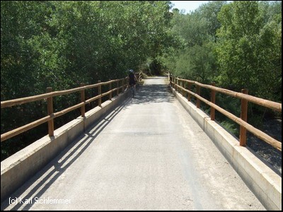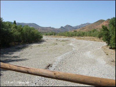 Und wieder geht es über den Fluss: ein breites Flussbett ohne Wasser zu dieser Jahreszeit