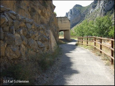 Die „kleine Schwester“ dieses Radwegs, die Via Verde de Préjano, die vier Kilometer vor Arnedillo ins Gebirge abzweigt, sollte man bei Gelegenheit auch noch befahren. Nur 5 km lang führt sie in eine Höhe von 730 m NN zu den alten Eisenminen und in ein Gebiet, in dem Spuren von Dinosauriern gefunden wurden.