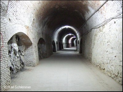 Der 550 m lange Tunnel verfügt über eine perfekte Beleuchtung. Früher wurden hier Champignons gezüchtet. Künstlerische Ausgestaltung der Wände!