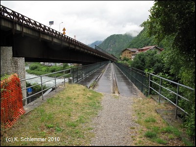 Es folgt ein kerzengerader Abschnitt am Fluss entlang. Auf einer neuen Eisenbrücke wird der Brembo überquert.