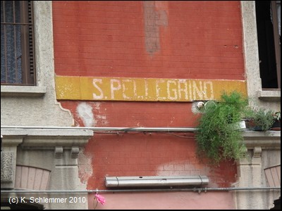Es geht am alten Bahnhof von San Pellegrino vorbei, er beherbergt ein Restaurant. Der Stationsname ist noch lesbar. (San Pellegrino hatte zwei Bahnhöfe!).