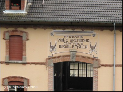 Der Bahnhof von San Giovanni Bianco, gerade noch lesbar die abgekürzte Inschrift.