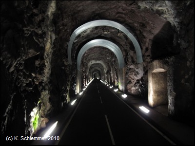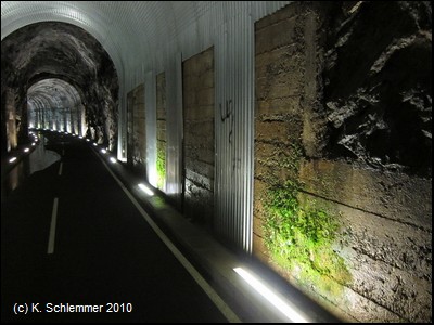 Man passiert einen felsigen Abschnitt des Radwegs, und schon folgt die nächste "Röhre"