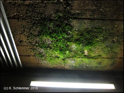 Auch das Innere des Tunnels mit den Absicherungen aus Wellblech ist sehenswert. Im Bereich der Lampen haben sich aufgrund des ständig feuchten Klimas und der Beleuchtung Farne und Moose entwickelt!