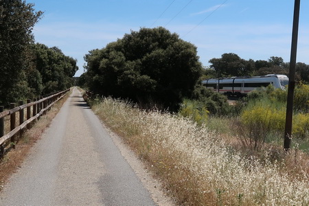Im Südwesten Spaniens, in der Region der Extremadura, an der Grenze zu Portugal, gibt es einen Bahntrassenradweg, der in das Gebiet des Nationalparks der Sierra de Monfragüe führt. Die Extremadura ist eines der am dünnsten besiedelten Gebiete Europas. Die wichtigsten Städte sind Badajoz (ca. 150.000 Einw.), Cárceres (ca. 96.000 Einw.), Merida (60.000 Einw.) und Plasencia (40.000 Einw.). Auf der gesamten Fläche von rund 40.000 Quadratkilometern leben nur ca. 1 Million Menschen, ensprechend etwa 25 Personen pro Quadratkilometer.