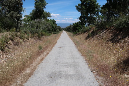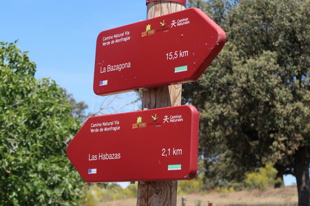 Bei unserem Besuch im Mai 2019 machte die Vía Verde einen etwas vernachlässigten Eindruck. Der Rastplatz war zugewachsen, die Schilder teils nicht mehr lesbar. Die Zufahrt auf den Radweg war nicht auf Anhieb zu sehen. Vom Begin bei Las Habazas folgt der Radweg der stillgelegten Bahnstrecke ca. 17,6 km in die Nähe der kleinen Ansiedlung Bazagona. Dort erreicht die alte Bahntrasse die heute aktive Bahnlinie nach Valencia de Alcántara an der Grenze zu Portugal. Der Fluss Tiétar, ein 380 km langer Nebenfluss des Tajo, ist dort nur ca. 2 km entfernt.