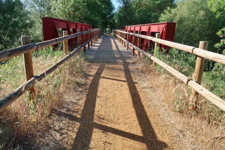 Abfahrt am Bahnhof von Benavente am westlichen Stadtrand im Park am Fluss bei Kilometer 8 des Radwegs.