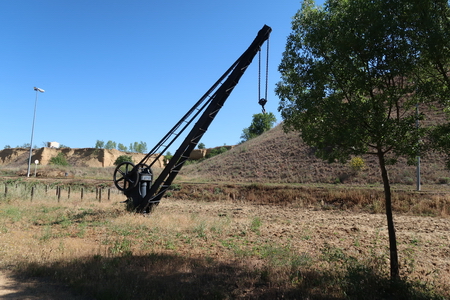 Hier steht der alte Lagerschuppen und ein rostiger Kran.