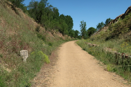 Eingerahmt von Büschen und Gestrüpp durchzieht die Trasse die Landschaft und erreicht bald den alten Bahnhof von Pobladura del Valle. Die Gebäude einer großen Fabrik für landwirtschaftliche Produkte stehen in merkwürdigem Kontrast zu den alten Bahnanlagen. Nur noch 4,9 km trennen uns von der Provinzgrenze zwischen Zamora und León. Dort endet die Vía Verde abrupt an einer Straßenbrücke im "Niemandsland", der nächste Ort, Maire de Castroponce, 160 Einw., ist 6 km entfernt.