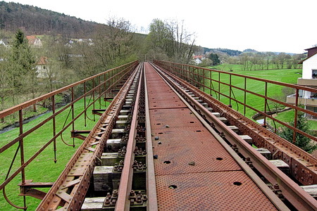 Vor Bernshausen überqueren zwei eiserne Brücken den Fluss und die Aue.
