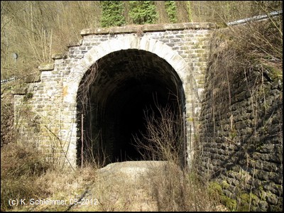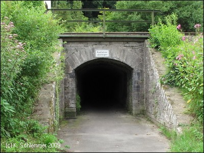 Der Gensbergtunnel (Nordportal) liegt versteckt im Gestrüpp, leider wurde er nicht in den Radweg einbezogen. Das Südportal liegt unterhalb der Weilstraße.