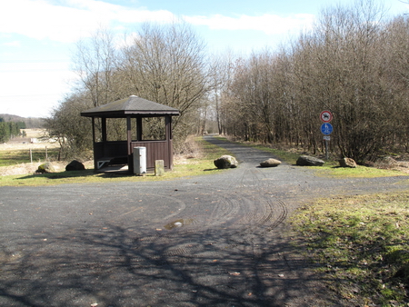 Am Rande des Truppenübungsplatzes entlang erreicht man den Waldrand mit einer Schutzhütte.