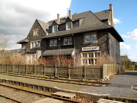 Der Abschnitt der Bahnstrecke Herborn–Montabaur (Westerwaldquerbahn) zwischen Rennerod (Rheinland-Pfalz) und Herborn-Burg (Hessen) ist schon seit langem stillgelegt. Der Personenverkehr wurde auf den ersten Abschnitten schon im Jahre 1959 eingestellt, Güterverkehr fand in einzelnen Abschnitten noch bis 1985 statt. 1995 kam auch der Güterverkehr nach Rennerod aus westlicher Richtung (Westerburg) ganz zum Erliegen. Noch liegen die Gleise am Bahnhof Rennerod, aber die stillgelegte Bahntrasse, die in einem großen Bogen um die Stadt verläuft, ist erst 1,5 km östlich nahe der Kaserne, befahrbar. So muss man aus dem Ortskern etwa 80 Höhenmeter auf einem asphaltierten Weg hinauf strampeln.