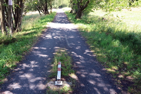 Der asphaltierte Radweg kreuzt die Schönbacher Hauptstraße und führt direkt nach Amdorf.