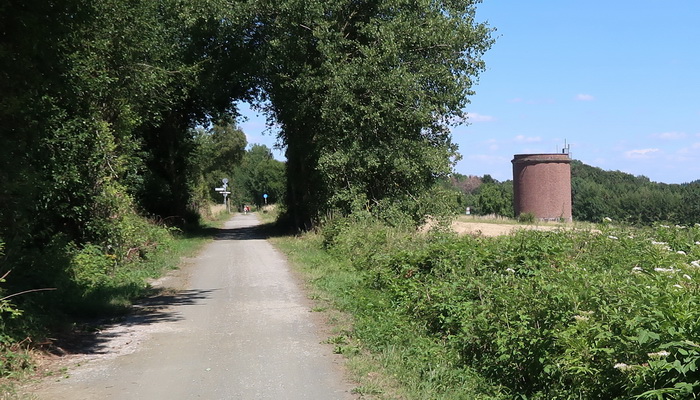 Der Weg biegt nach rechts ab, hier beginnt die Fahrt auf der Bahntrasse.