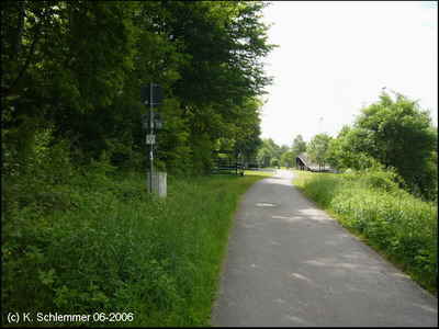 Durch den Ort der Beschilderung folgen! Am Ortsende rechts halten, die Bahntrasse links von uns. Nicht durch die Unterführung!