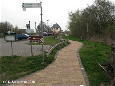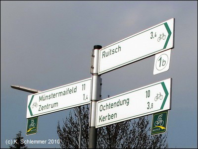 Am Bahnhof findet man (neben den ungeeigneten Fahrradständern - keine vernünftige Möglichkeit zum Anschließen) Informationen zum Vulkanparkradweg. An der Bahnstrecke entlang geht es stadtauswärts.