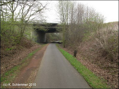 ....dann in einer leichten Kurve unter einer Brücke durch. Vor Mertloch unterquert man eine Straße.
