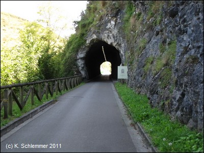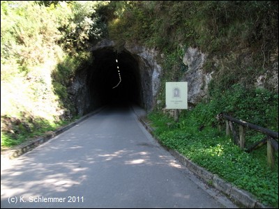 Auf asphaltierter, ebener Strecke geht es kaum merklich bergauf. Schon folgt der erste von vier Tunneln: Túnel del Venero, sehr gut beleuchtet.